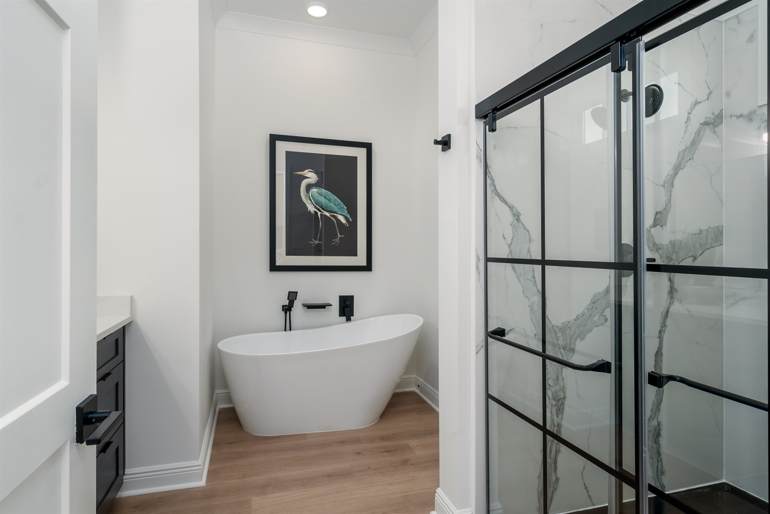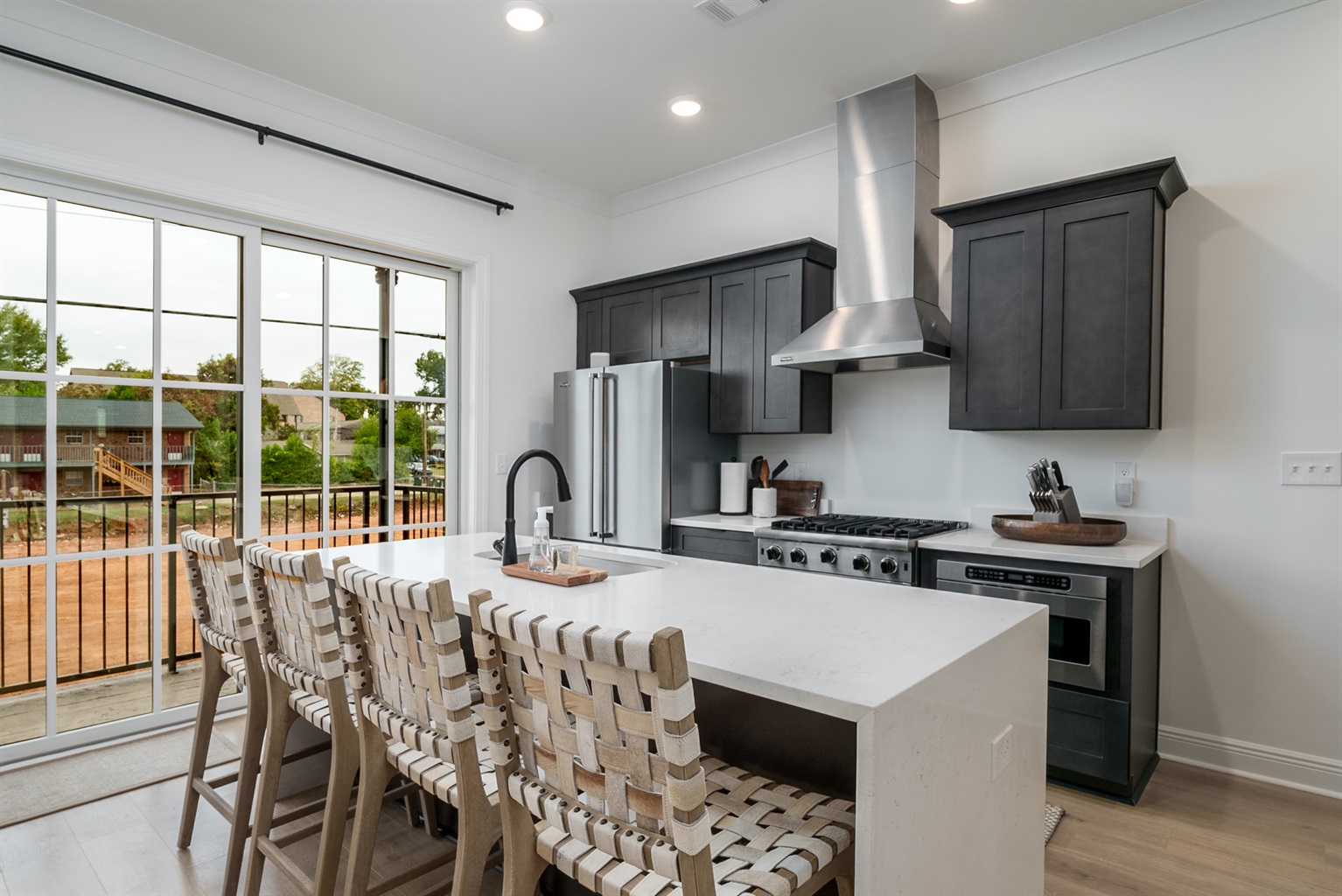 When you come upstairs, you’ll be greeted by a full luxury kitchen with Viking appliances, floor to ceiling windows in the living room, comfy couches and a large 75 inch TV. Another perfect floor for entertaining. Also located here is a convenient ½ bath for guests. Walk down the hall to discover stadium views from the second master king suite bedroom, a large walk-in closet and a private bathroom including both a tub and shower.