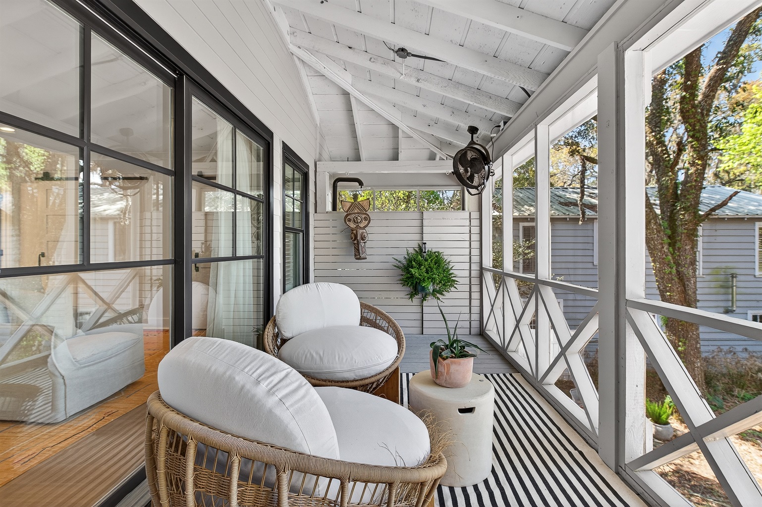 The expansive yard, shaded by mature oaks, offers space to gather, relax, and unwind, while multiple screened porches create the perfect setting for morning coffee, afternoon lounging, or evening cocktails.