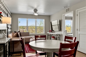 The large Smart TV serves as the centerpiece to a cozy and comfortable living room with a great view of the river. The adjoining dining room & kitchen seat a total of 4. The newly tiled kitchen offers stainless steel appliances. Washer/dryer are off of the kitchen.