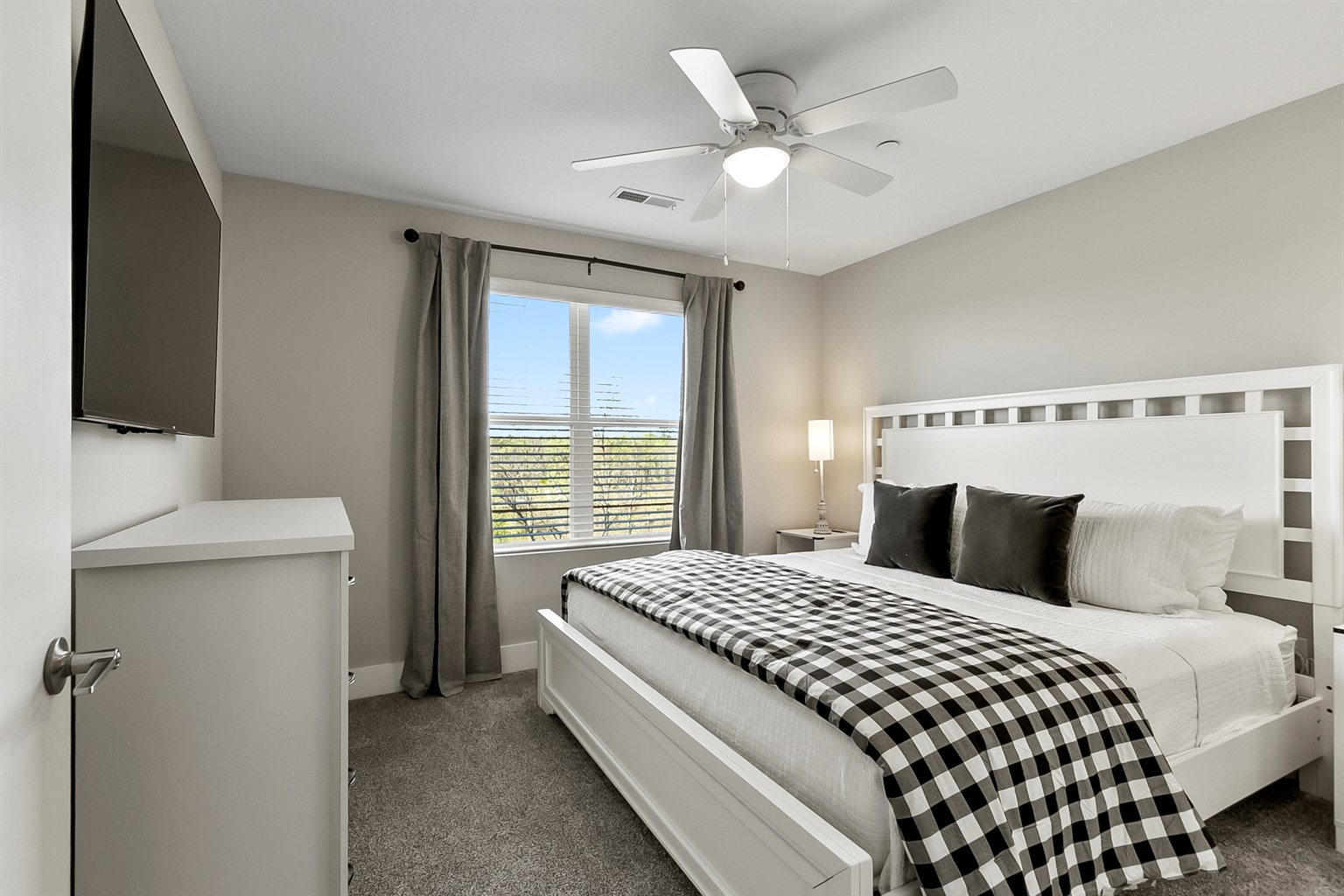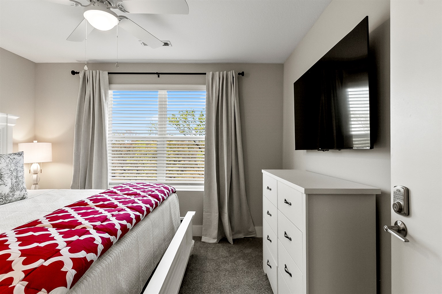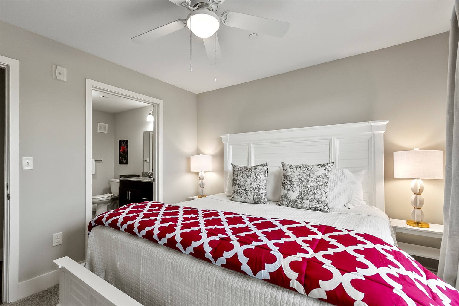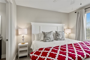 The private master suite boasts a king bed, walk-in closet and en-suite bathroom with shower.