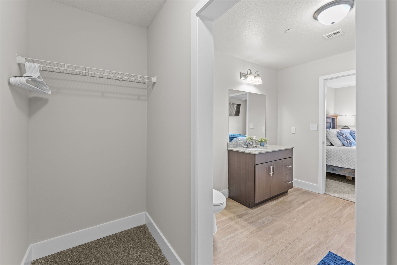 The private master suite boasts a king bed, walk-in closet and en-suite bathroom with shower.